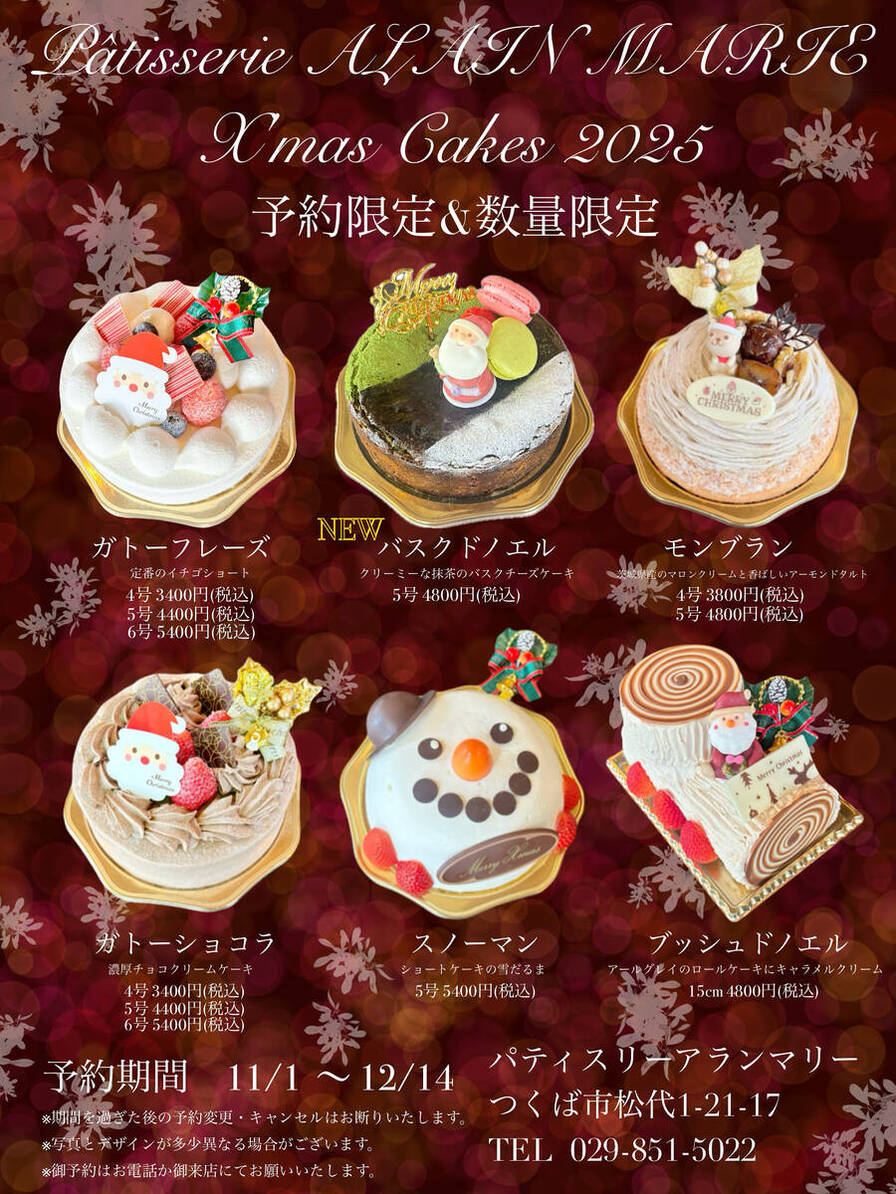 クリスマスケーキ2025のポップが出来ました♪ 抹茶バスクチーズケーキ『バスクドノエル』が今年新登場...